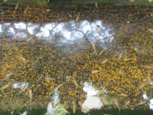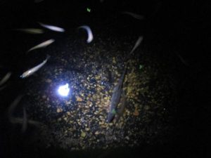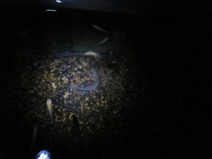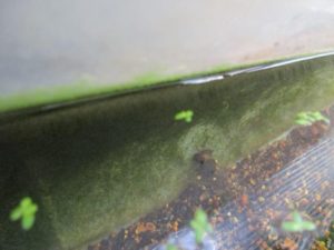 庭の自作ビオトープ(20180526)本日の昼と夜です 今日の水温は20℃です。 昼間の様子です。 カワニナさんが壁面の藻らしきものを食べた跡なのか色が変わっています。 メダカの食事風景です。 夜のビオトープの水底です(ドジョウたちの食事の時間です) カワニナさんは昼も夜も活動しています。 スポンサーリンク