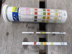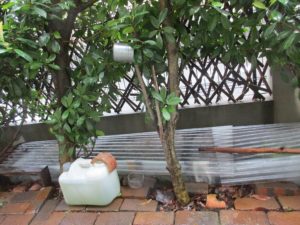 庭の自作ビオトープ(20180728)水質検査 今日の水温は24℃です。 今日のビオトープの様子です。 台風がやってくるので屋根をしっかりとかぶせます。 ポリタンク内の様子です。 水連鉢(太い方)とポリタンク(細い方)の水質検査結果です(水連鉢は足し水しているのでポリタンクより良質ですね) スポンサーリンク
