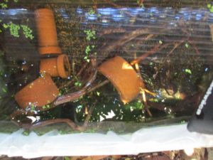 寒いあいだの隠れ家として流木とか陶器類を投入しました。
