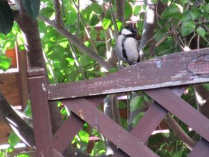 ひまわりの種を食べにシジュウカラが来店です。