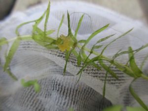 黒バケツに入れていた先日見つけたメダカの卵を発砲スチロールの箱に移しました。
