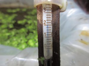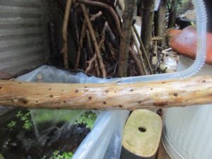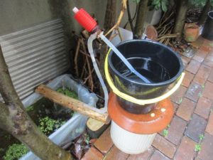 今日も牡蠣殻1週間浸け置き水道水を給水してビオトープから同じくらいの水量を排水します。