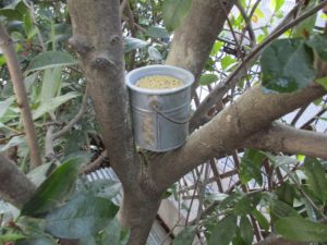 庭のバードフィーダー(20191124)はじめました バードフィーダーはじめました。 バードフィーダー6号は庭木の間にセッティングしてミカンを収容しています。 バードフィーダー9号はバードフィーダー6号の前の枝に吊るしました。 バードフィーダー4号はいつもの定位置でいつものヒマワリの種を入れます。 一年間設置したままになっていたバードフィーダー3号にはラードを注入します。 バードフィーダー8号はいつもの席でバードケーキを担当します。 スポンサーリンク